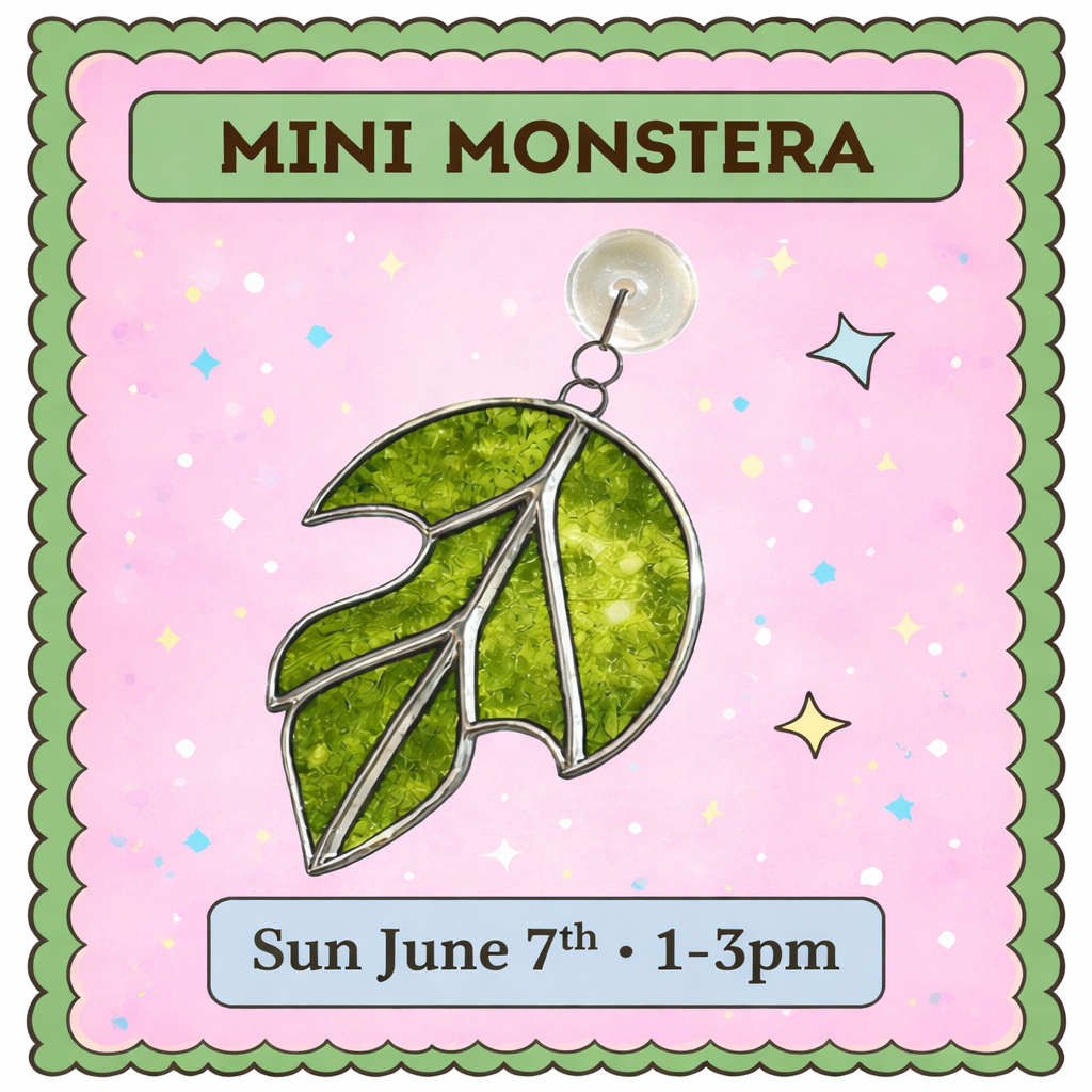 In this beginner stained glass class, you’ll learn how to create a charming Mini Monstera design while exploring basic stained glass techniques. Join Bailey from @Soldersunday at The Art Room. All supplies are included.